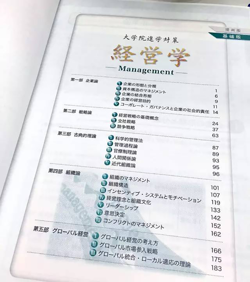 例如:早稻田大学商学研究科,入学考试范围覆盖了7本不同作者及不同方向的专业书籍。