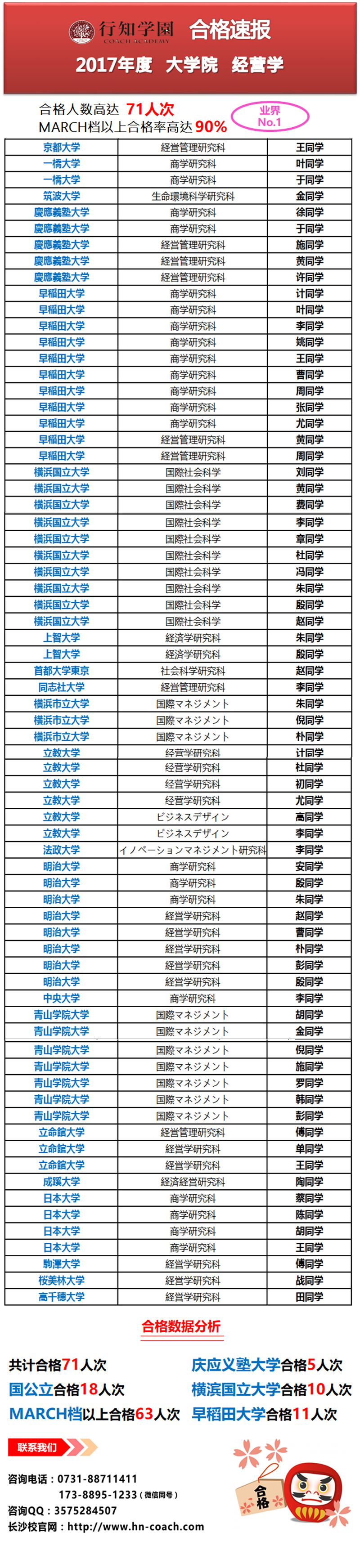 壮观的2017年度大学院经营学合格实绩发表!