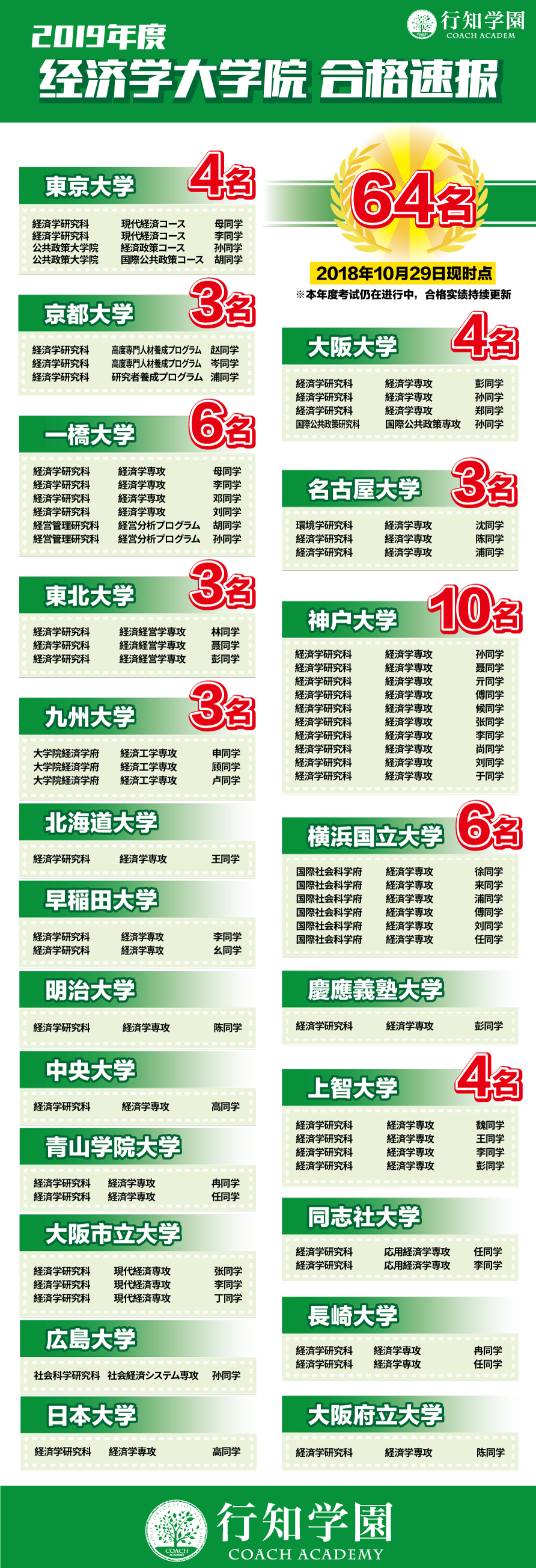 2019年度经济学大学院合格速报(截止到2018.10.29)
