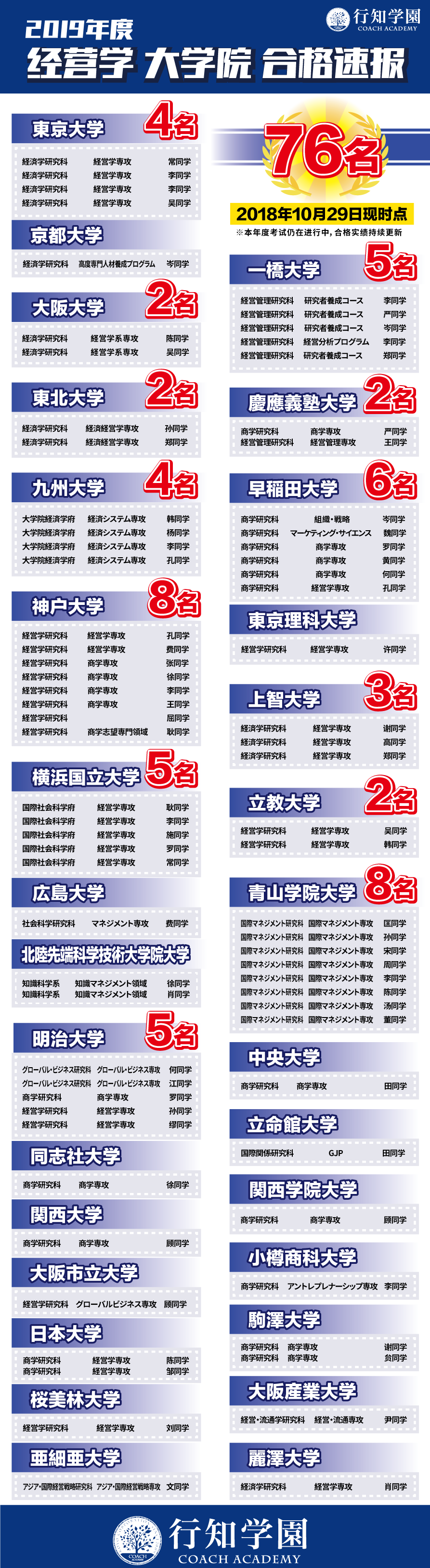 2019年度经营学大学院合格速报(截止到2018.10.29)