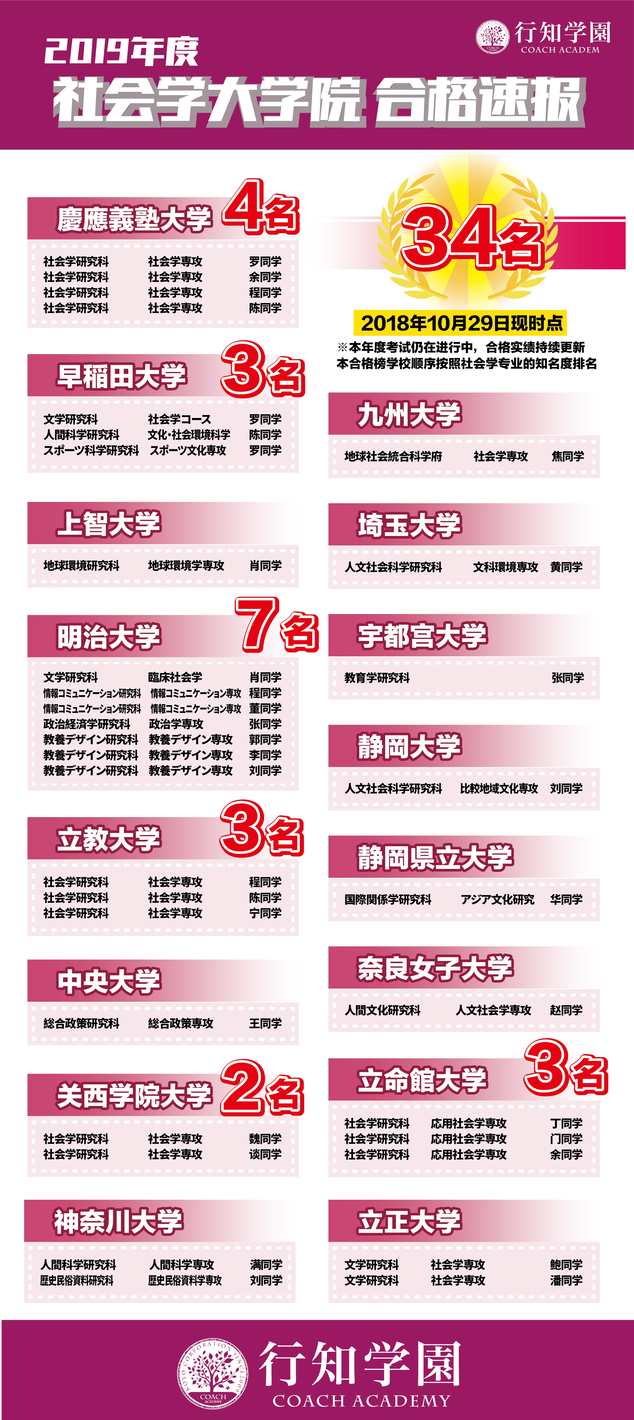 2019年度社会学大学院合格速报(截止至2018.10.29)