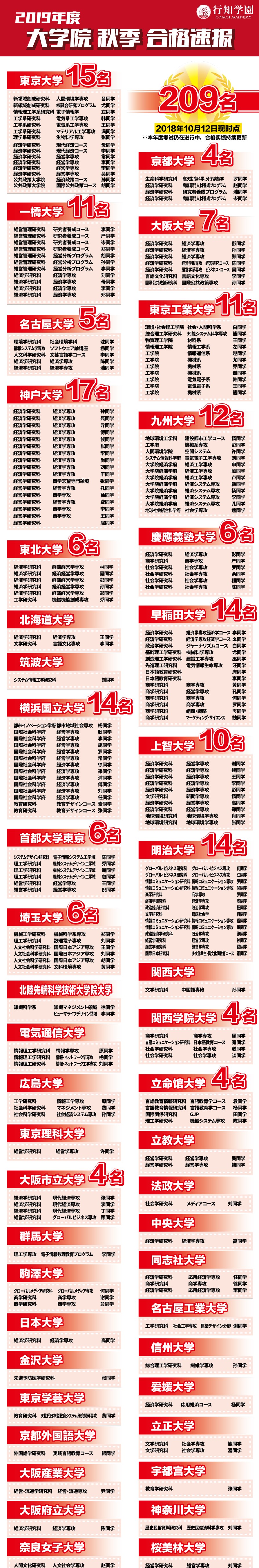 2019年度大学院总体(秋季)合格速报(截止至2018.10.12)