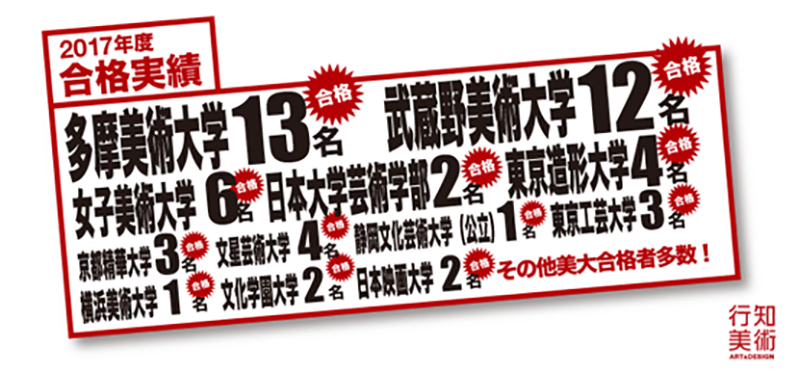 行知美术拥有来自东京艺术大学、武藏野美术大学、多摩美术大学等日本知名美术大学的业界超高水准讲师阵容。其中,有成功指导超过1500名应试生成功考入日本名牌美术大学的超资深讲师,有为东京艺术大学制作学校宣传册的设计师,也有熟知最新考试技巧和资讯的名牌美术大学在校生前辈。教学范围广泛,设计、影像、建筑、漫画、动漫、油画、日本画、雕刻等专业方向的学生,均可得到高质量的指导。